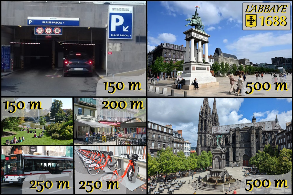 dans une petite rue très calme et facile d’accès de l’hypercentre clermontois, à proximité immédiate des principaux points d'intérêt